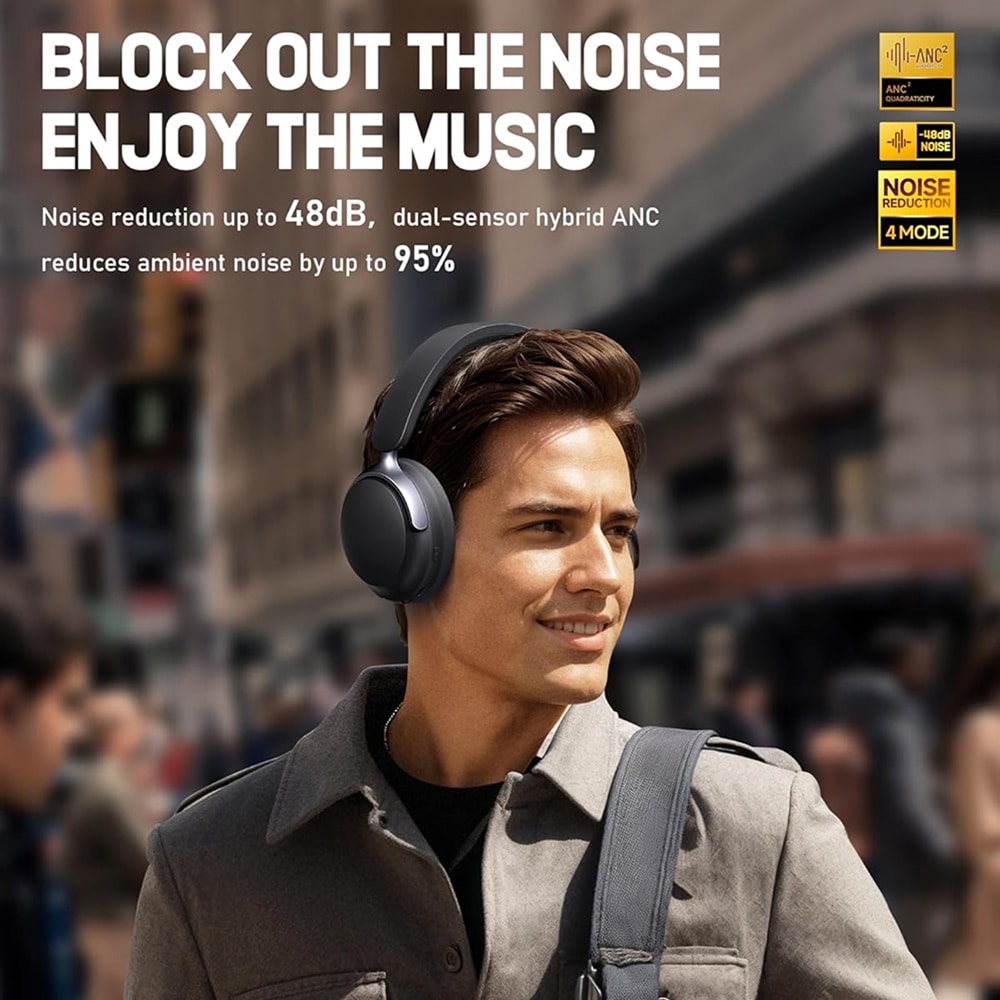 Mufflyon V2 Noise Canceling Headphones utilize cutting-edge hybrid ANC technology that eliminates up to 95% of environmental noise, creating an immersive audio sanctuary wherever you are, whether traveling or relaxing.