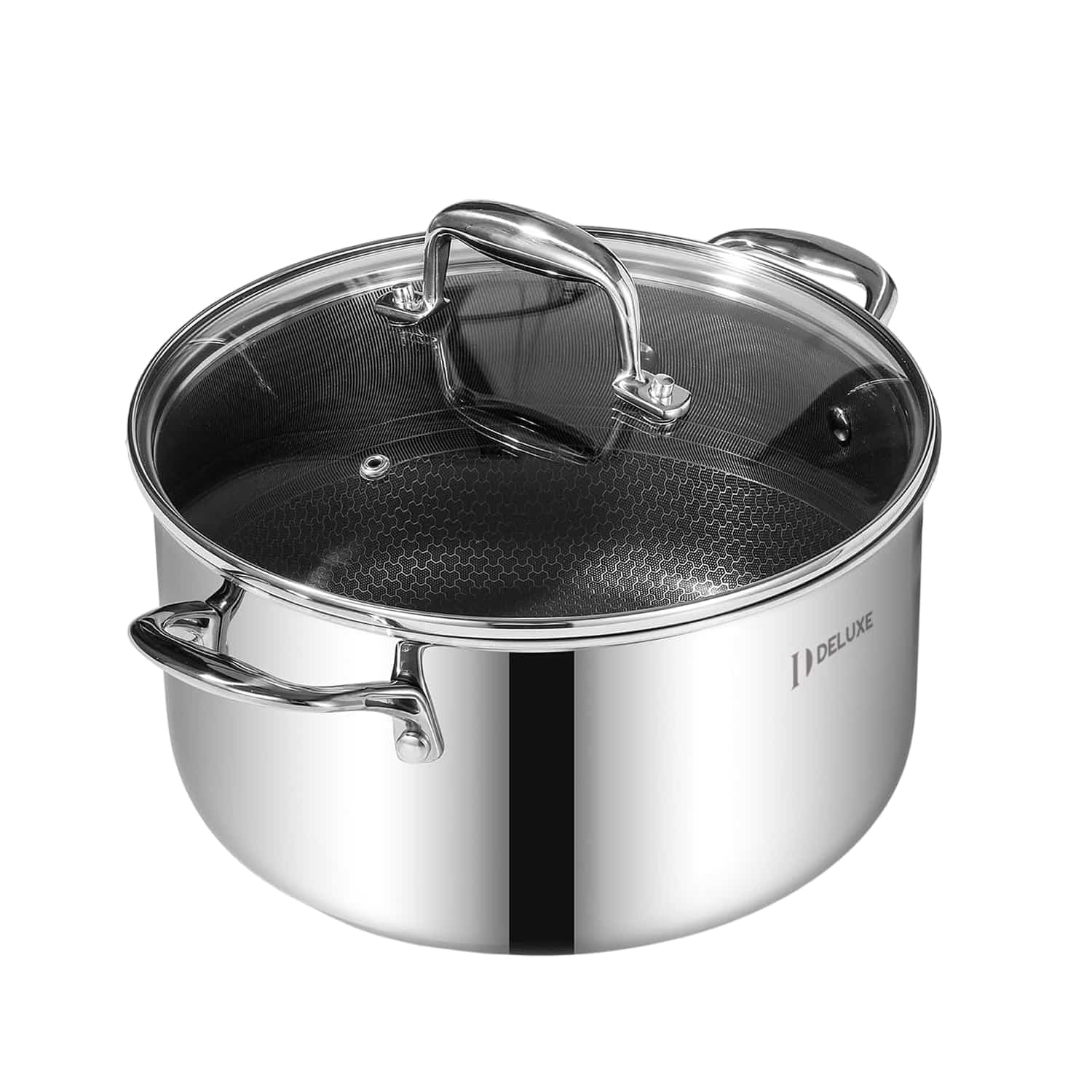 The DELUXE Titanium Pot represents premium cookware engineering with its innovative five-layer structure that combines stainless steel durability with advanced non-stick performance. This dutch oven delivers exceptional heat distribution that ensures even cooking and precise temperature control across all cooking surfaces.