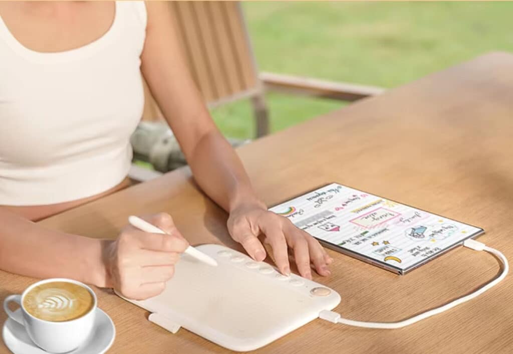 The tablet’s minimalist design incorporates a gently curved palm rest and slim profile, prioritizing comfort during extended use. At just 8mm thick, it’s one of the most portable options in its class.