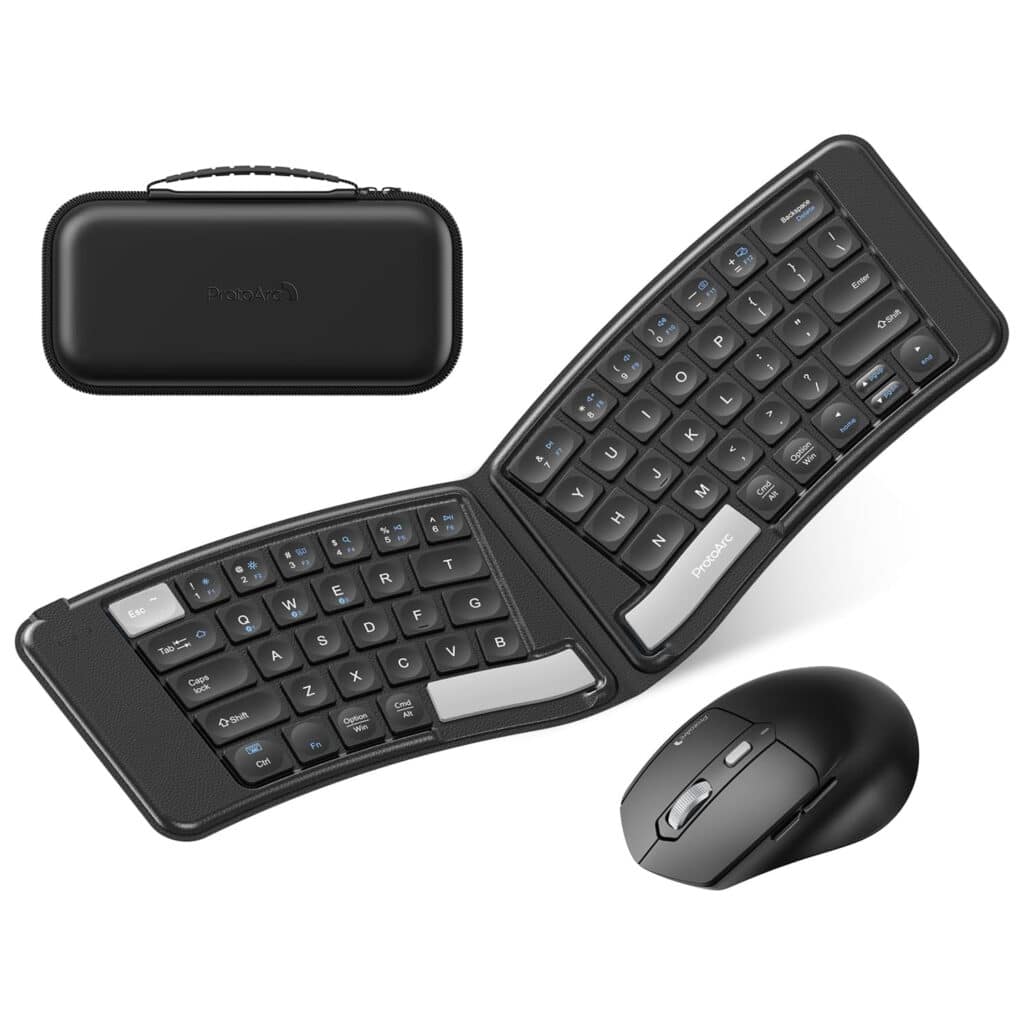 The ProtoArc Foldable Keyboard distinguishes itself as a complete mobile productivity solution by including a thoughtfully designed ergonomic mouse and protective travel case. The keyboard’s unique V-shape design with 166-degree split keyset arrangement promotes a natural hand position that noticeably reduced wrist fatigue during multi-hour testing sessions.
