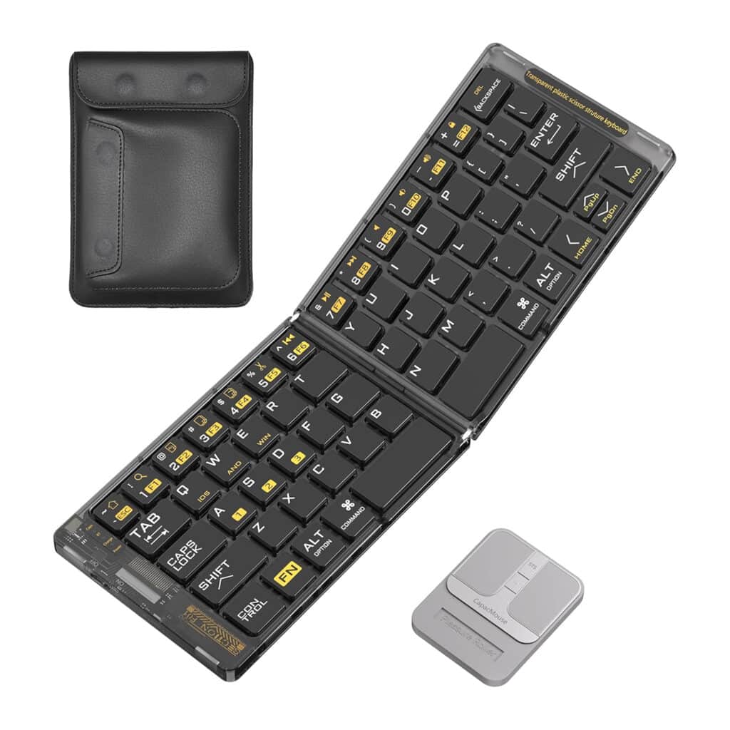 The ANDLUCK Foldable Keyboard rounds out our top five with its distinctive transparent design that offers a fascinating glimpse into the internal mechanics. Beyond aesthetics, this keyboard delivers a comprehensive package including a companion mouse, device stand, protective case, and charging cable, creating a complete mobile office solution in one purchase.