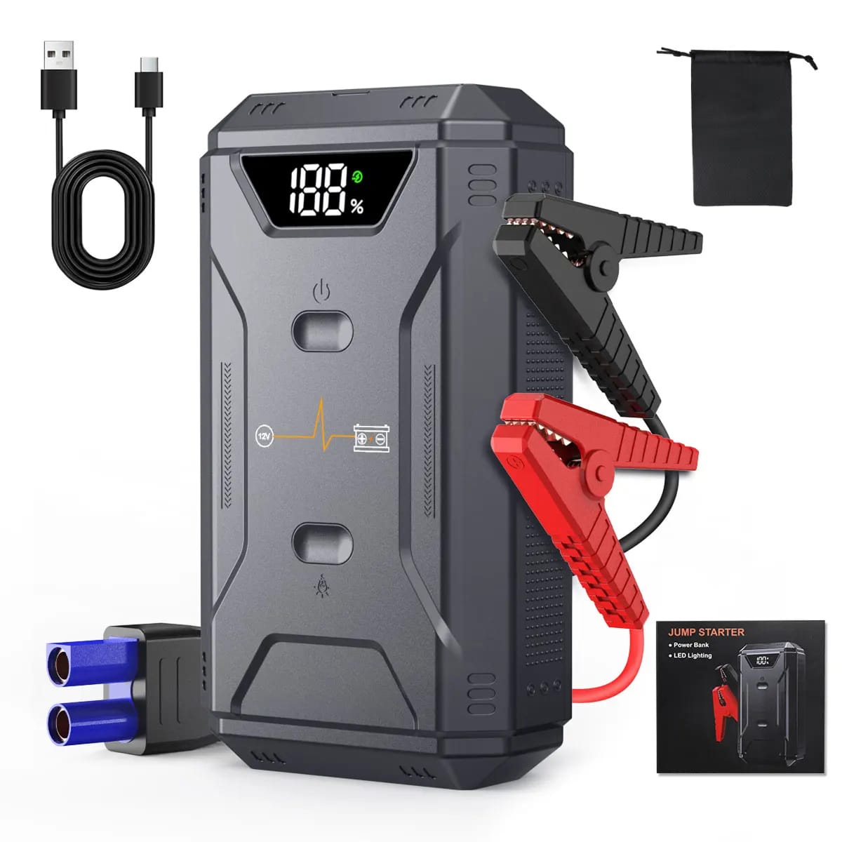 The Hererod Jump Starter For Truck is a versatile all-rounder that balances jump-starting power with everyday utility features. It can start a 9.0L gas engine in roughly three seconds, providing up to sixty jumps per charge.