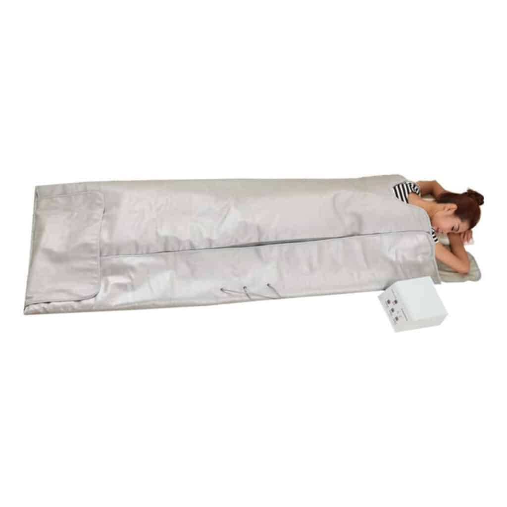 A sauna blanket is a portable, personal wellness device that uses far infrared technology to create a sauna-like experience at home. It functions like a sleeping bag with built-in heating elements that emit infrared rays to create therapeutic heat.
