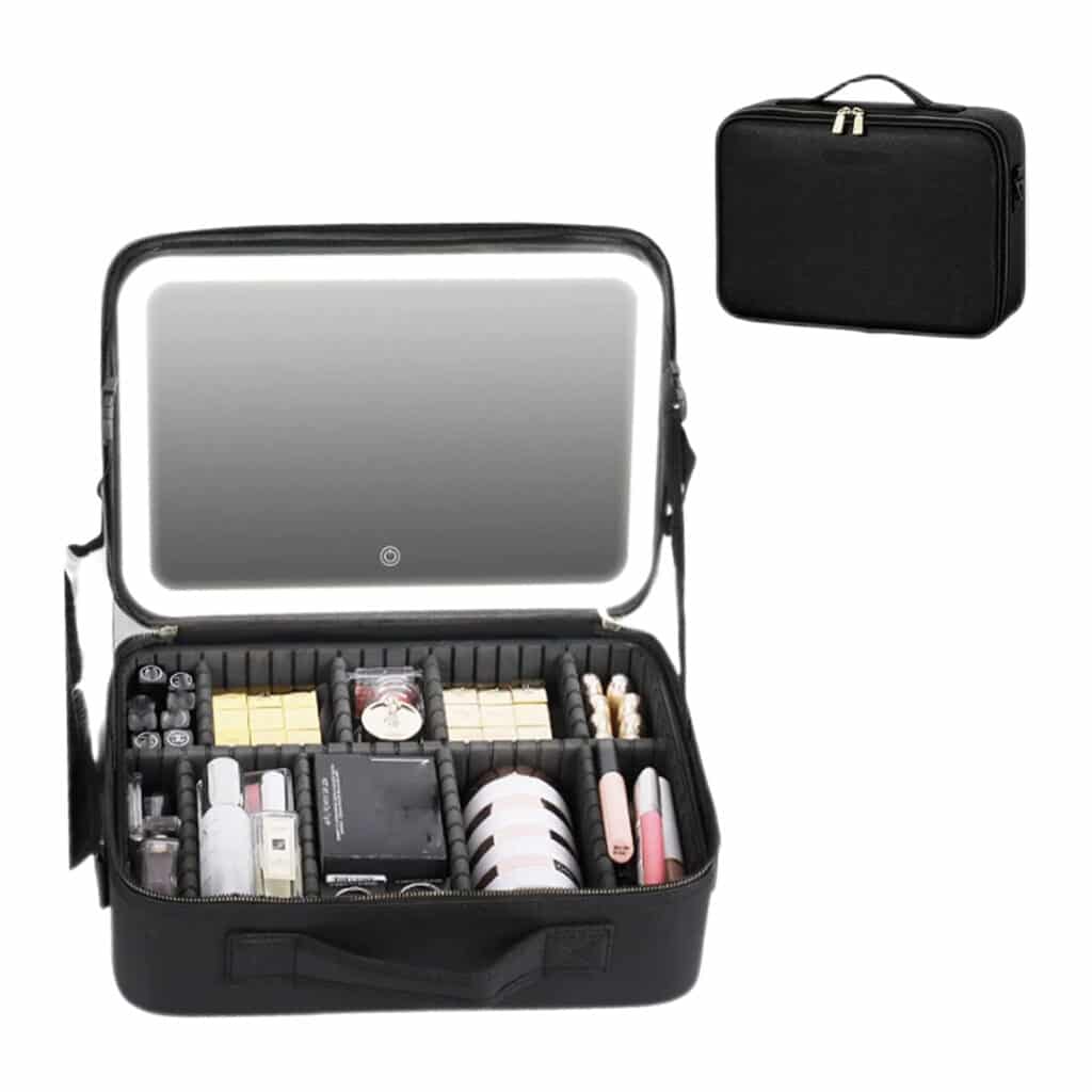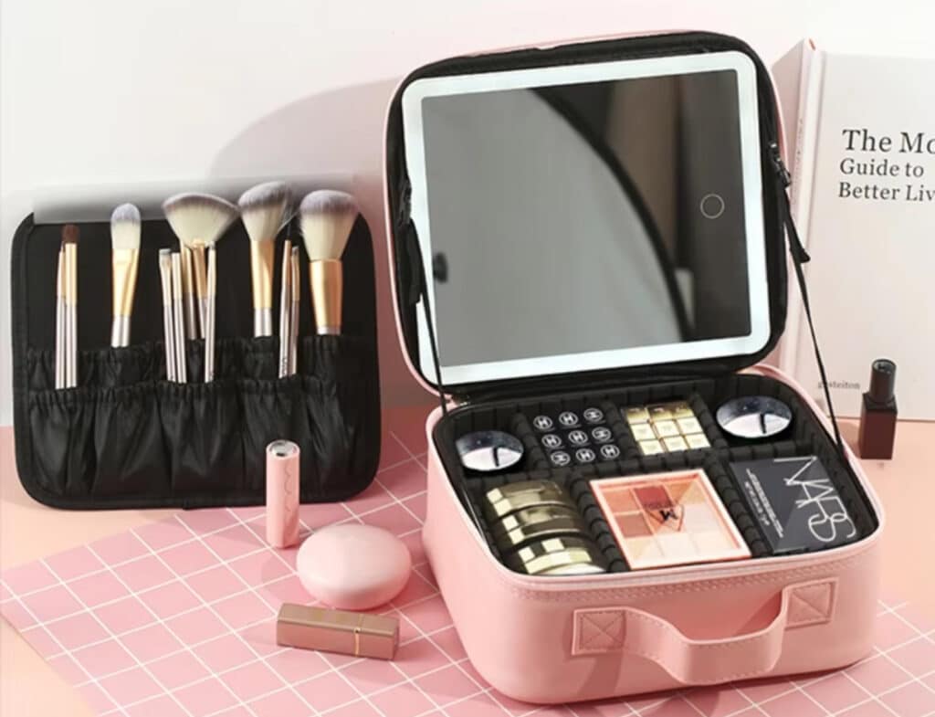 Built-in mirrors, lighting options, brush holders, and other practical features that enhance the travel makeup experience.